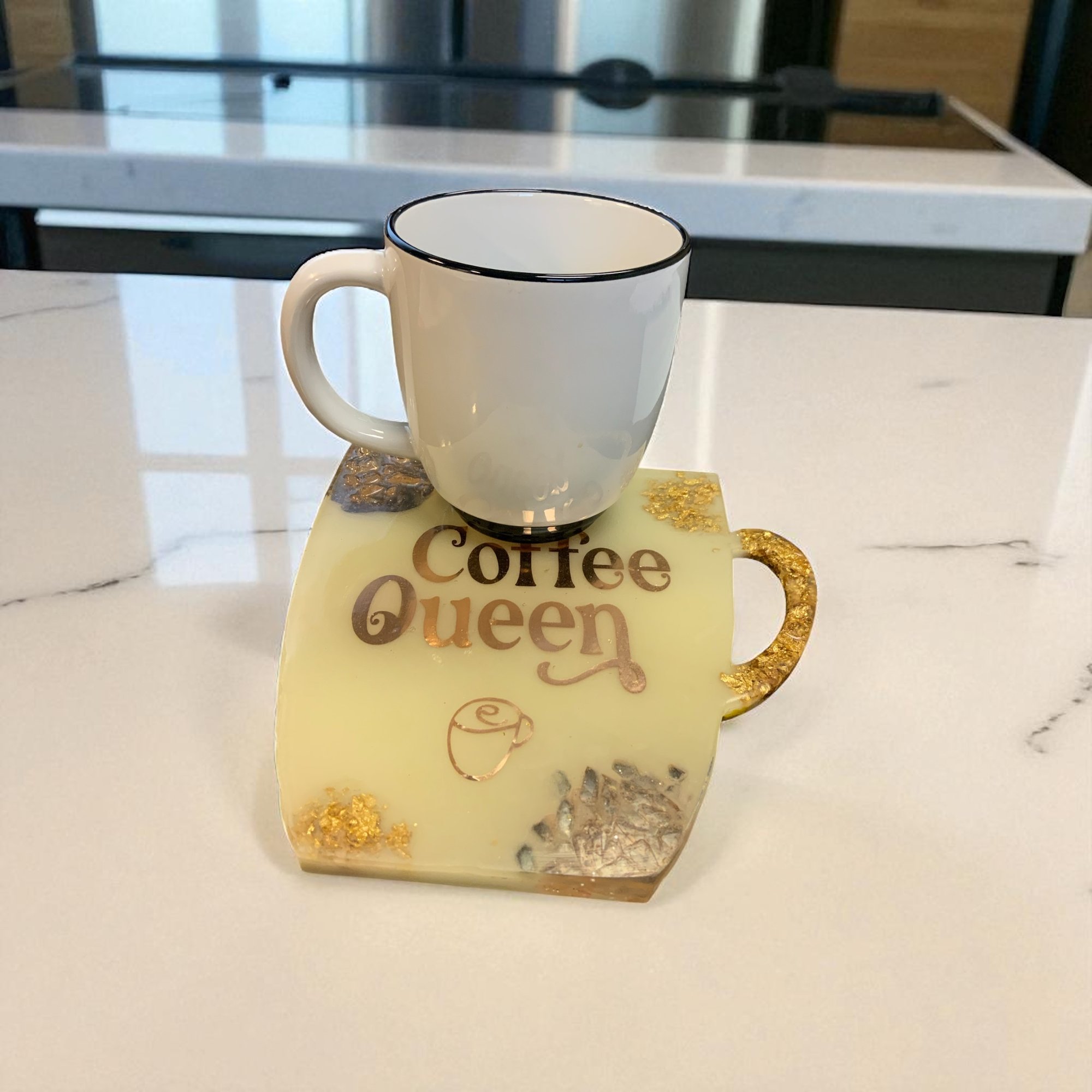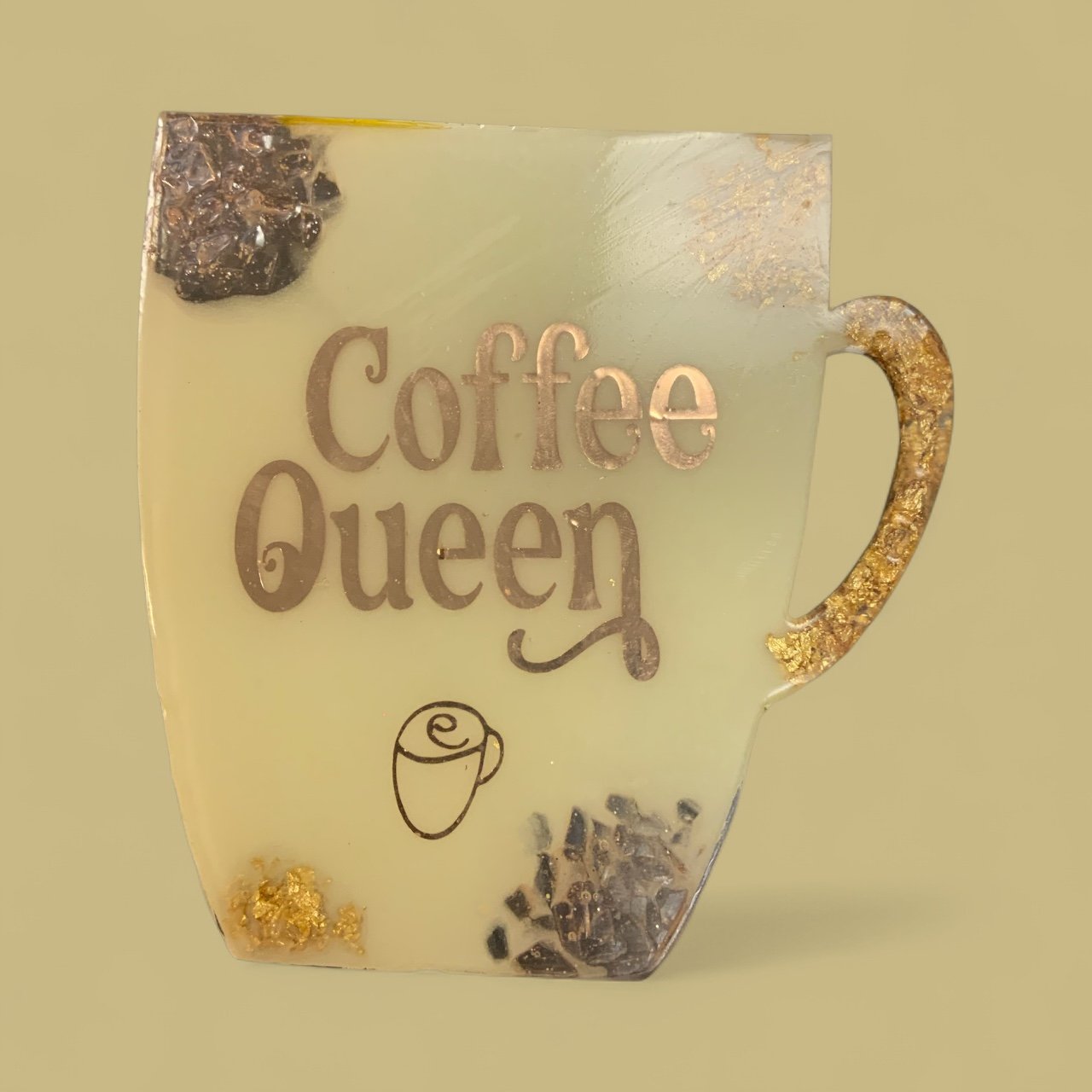 Handcrafted resin, gold accents, and a chic mug-shaped design made for the true coffee lover.